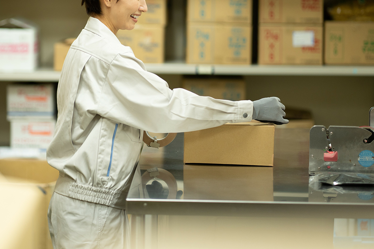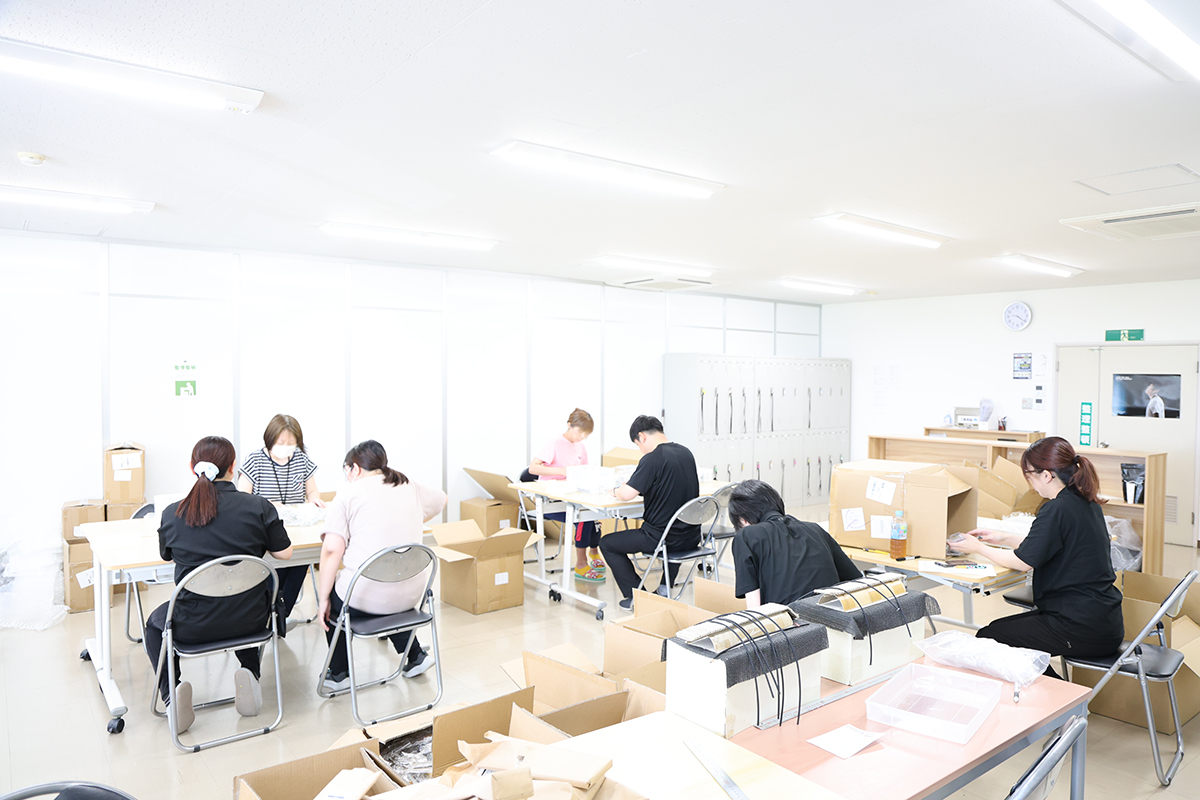施設内では、製品の制作・発送業務を行っております。制作作業は、製造、パッケージング作業、検査などの工程があり、発送作業は、梱包、発送準備作業、発送業者への受け渡し作業など多くの業務があります。色々な経験を通し、考えることや正確に実行するなど、細かなスキルを学べる環境となっております。