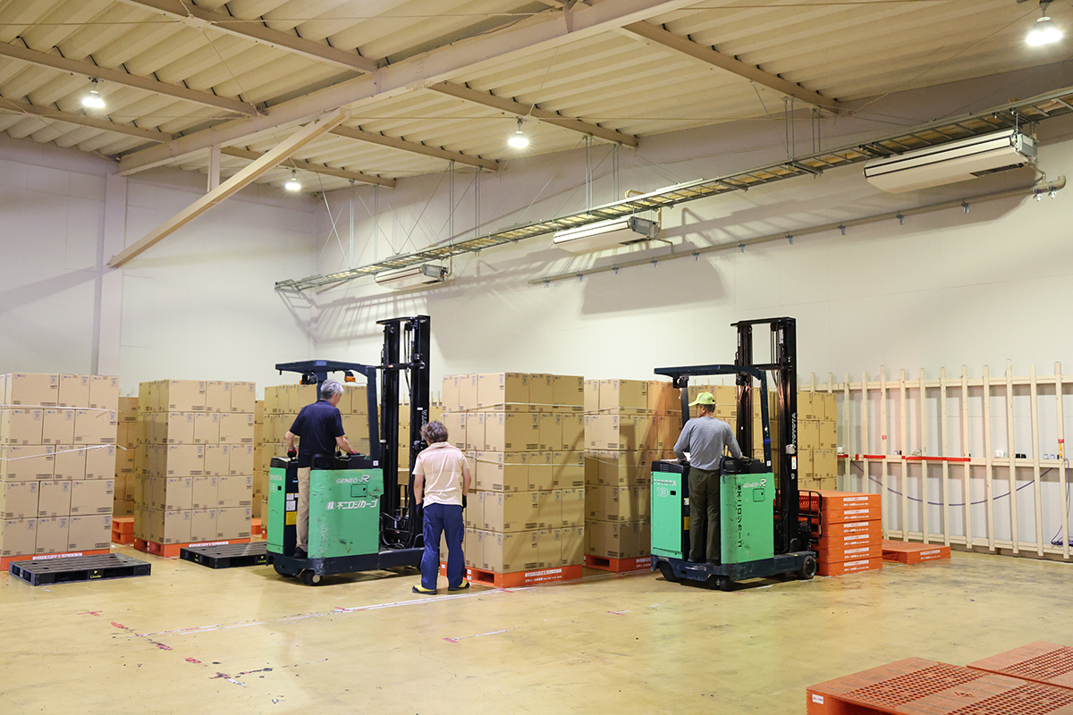 施設外では、倉庫内での荷物の積み替え作業を行っております。施設外での作業となるため、より実社会に近い形の就労、訓練を行うことができます。また、体力面の向上や決められたルールを遵守するなど、一般企業での就労に向けた基盤が作れるような環境となっております。